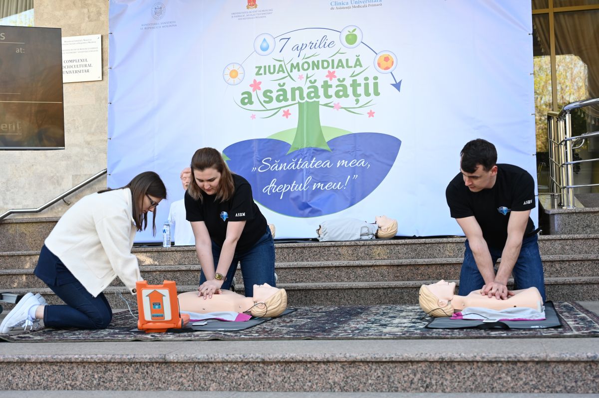 Annually, on April 7, we celebrate World Health Day, which aims to promote a healthy lifestyle, awareness of physical and mental well-being, as well as the risks of compromising it. Nicolae Testemitanu State University of Medicine and Pharmacy from the Republic of Moldova in partnership with the Association of Medical Students and Residents from Moldova (AMSR) organized today a series of actions in support of the global initiative. In the inauguration of the event, which took place at the University Sociocultural Complex, vice-rector for social activity Marcel Abras mentioned that by marking the World Health Day we can talk to the public about health that we received for free from nature and must protect. At the same time, starting today we must remove certain risk factors and change our way of life. "Let's say no to smoking, sedentarism, increased salt consumption, etc. and adopt a healthy lifestyle, prophylactic check-ups with specialist doctors, in such a way that we do not put the health system in difficulty", the vice-rector said.