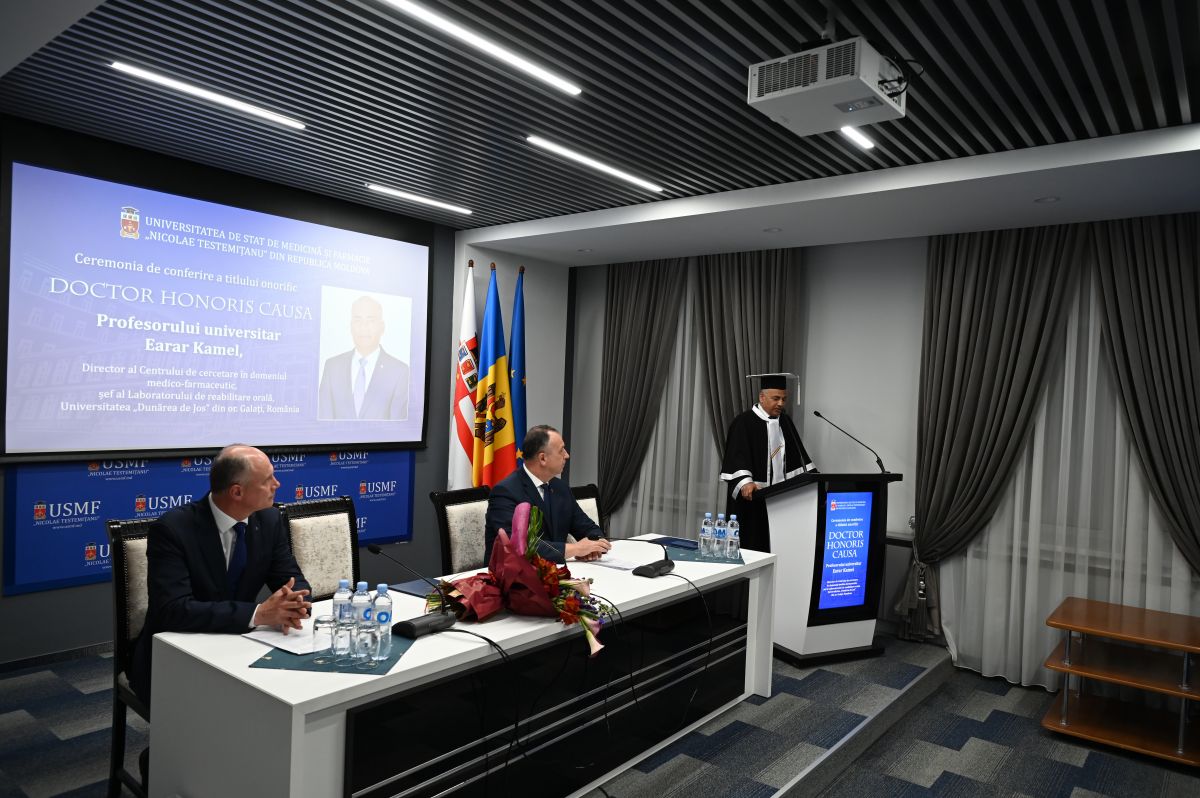 Senatul Universității de Stat de Medicină și Farmacie „Nicolae Testemițanu” din Republica Moldova i-a acordat titlul onorific Doctor Honoris Causa profesorului universitar Dr. Earar Kamel, director al Centrului de cercetare în domeniul medico-farmaceutic, șef al Laboratorului de reabilitare orală, Universitatea „Dunărea de Jos” din or. Galați, România.