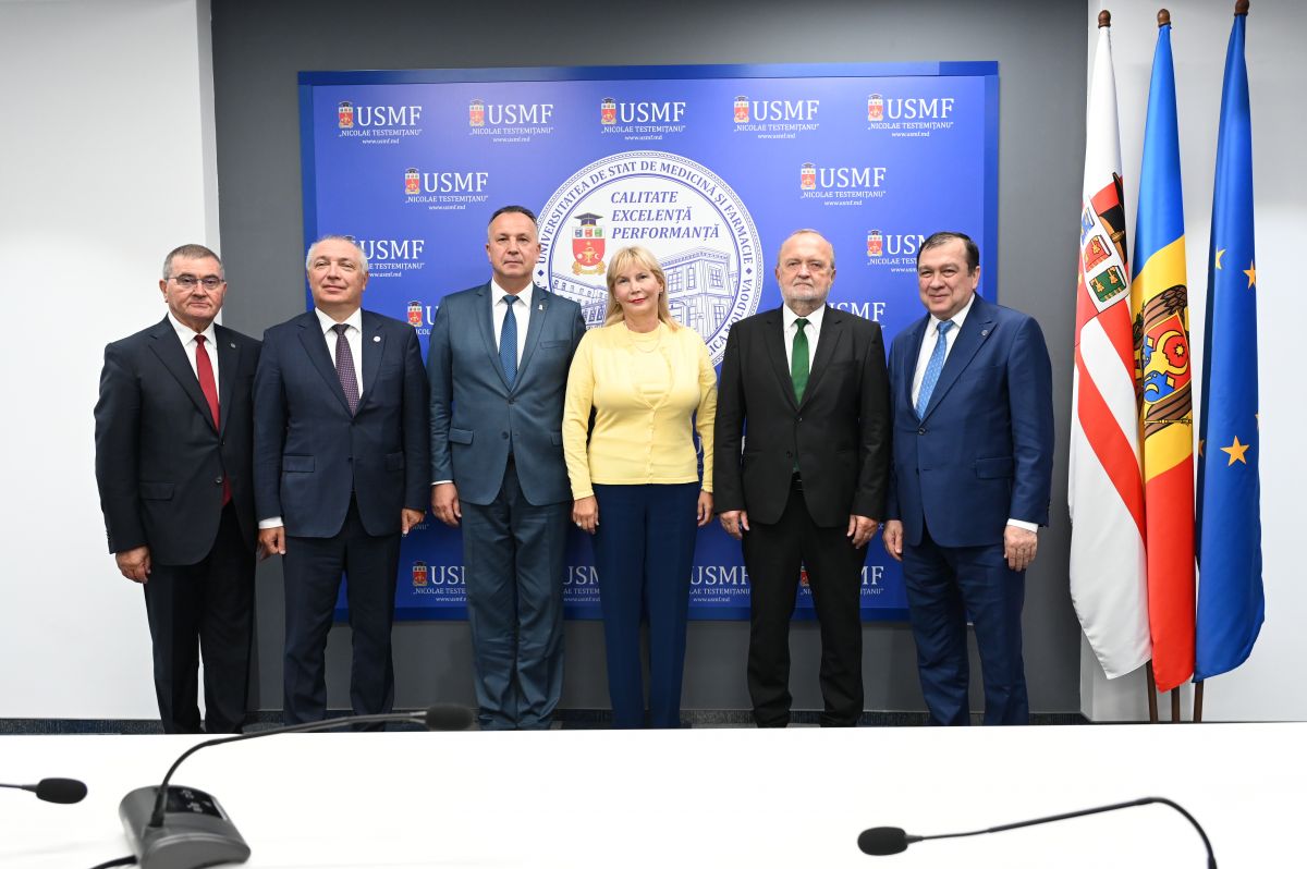 „Relațiile de colaborare între universitățile de medicină din România și Republica Moldova vor cunoaște noi dimensiuni în dezvoltarea învățământului superior medical și racordarea acestuia la standardele europene”. Declarația aparține rectorului Emil Ceban și a fost făcută la ședința Alianței G6-UMF, reprezentată de către rectorii universităților de medicină și farmacie din România, care s-au întrunit la Universitatea de Stat de Medicină și Farmacie „Nicolae Testemițanu” din Republica Moldova la 14 septembrie 2024.